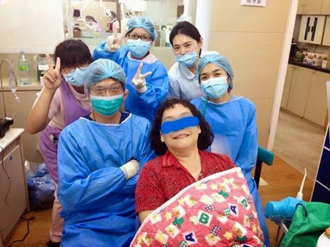 今天上午林博川醫師,從拔掉五顆牙齒開始,到完成植牙手術,一共不到兩小時,之後又花了一個小時印模製作假牙,過程非常順利!預計三天後就要幫李阿姨裝戴固定式假牙。